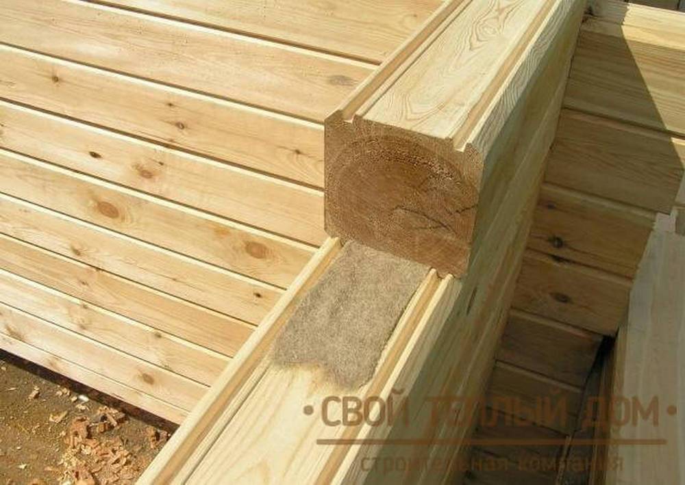 Профилированный брус совершенно не нужно конопатить. Для того чтобы обеспечить необходимый уровень герметизации швов, нужно всего лишь воспользоваться специальными уплотнительными прокладками. Кроме того шлифовать стены дома, и выполнять работы по отделке также не обязательно.